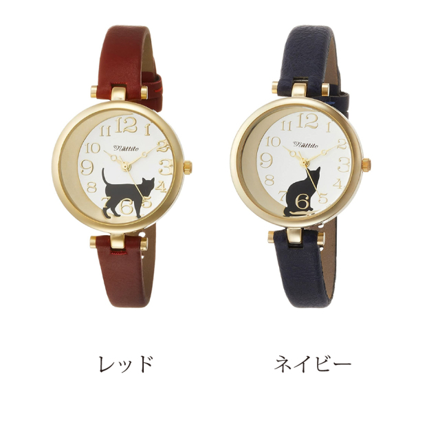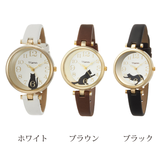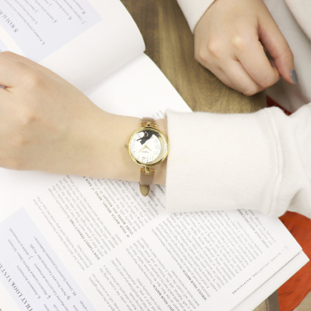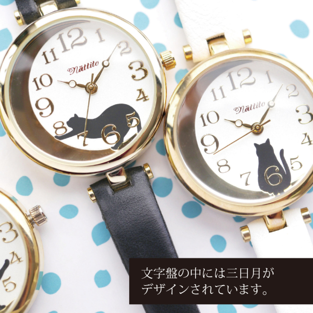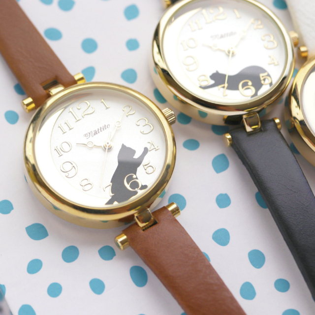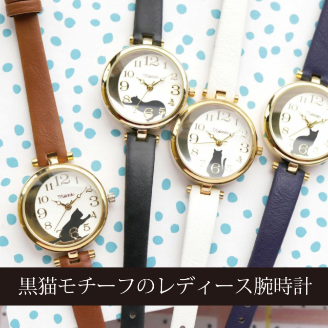黒猫をモチーフとした文字盤がかわいい腕時計。