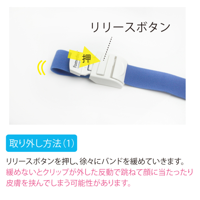 取り外しがとっても簡単な幅広のワンタッチタイプ駆血帯。体に食い込みにくい幅広タイプ!しかも超軽量!