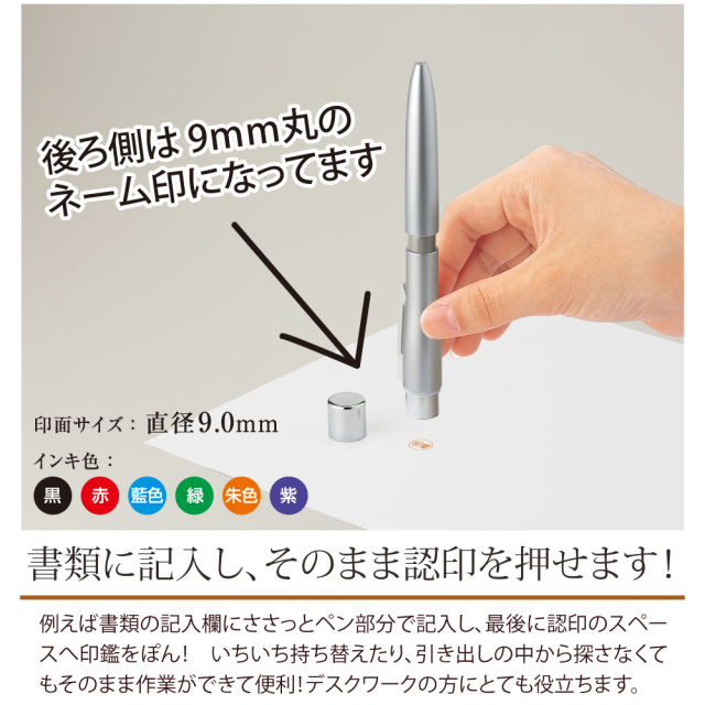 例えば書類の記入欄にささっとペン部分で記入し、最後に認印のスペースへ印鑑をぽん! いちいち持ち替えたり、引き出しの中から探さなくてもそのまま作業ができて便利!デスクワークの方にとても役立ちます。