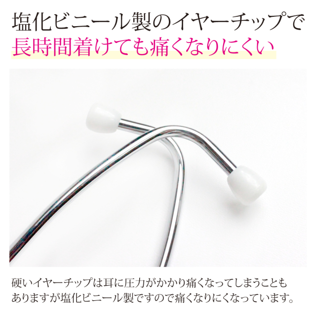 | 素材 | チェストピース:アルミニウム、Yチューブ:塩化ビニル、耳管:真鍮、イヤーチップ:PVC樹脂 |