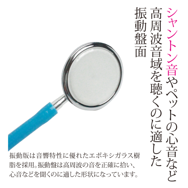 シャントン音やペットの心音など高周波音域を聴くのに適した振動盤面