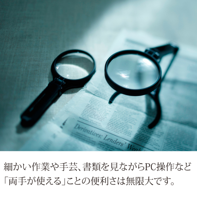 ルーペを自立させれば両手が自由に使えるので、手芸やネイルアートなど細かな作業にとても便利です。