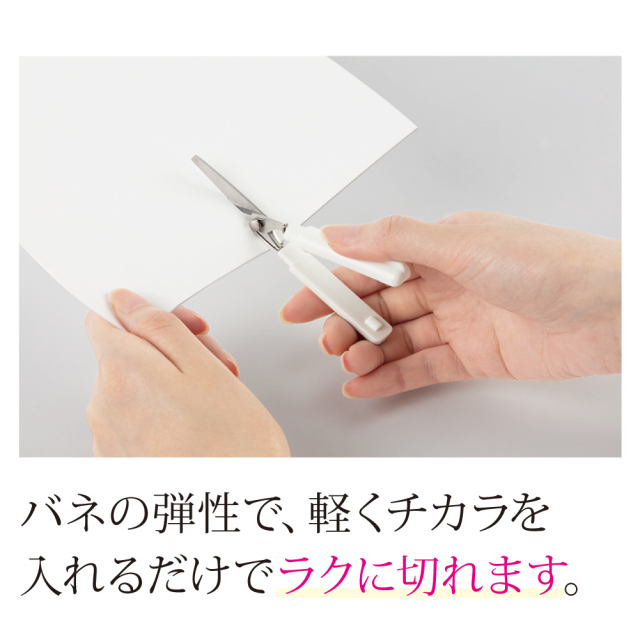 バネの弾性で、軽くチカラを入れるだけでラクに切れます。