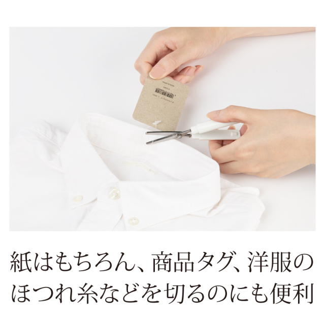 紙はもちろん、商品タグ、洋服のほつれ糸などを切るのにも便利。