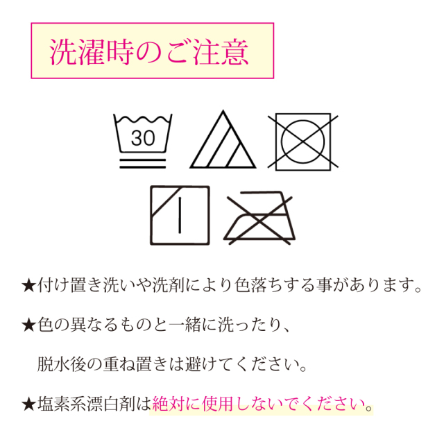| 洗濯時 | 洗濯ネットのご使用をお願いいたします。 |