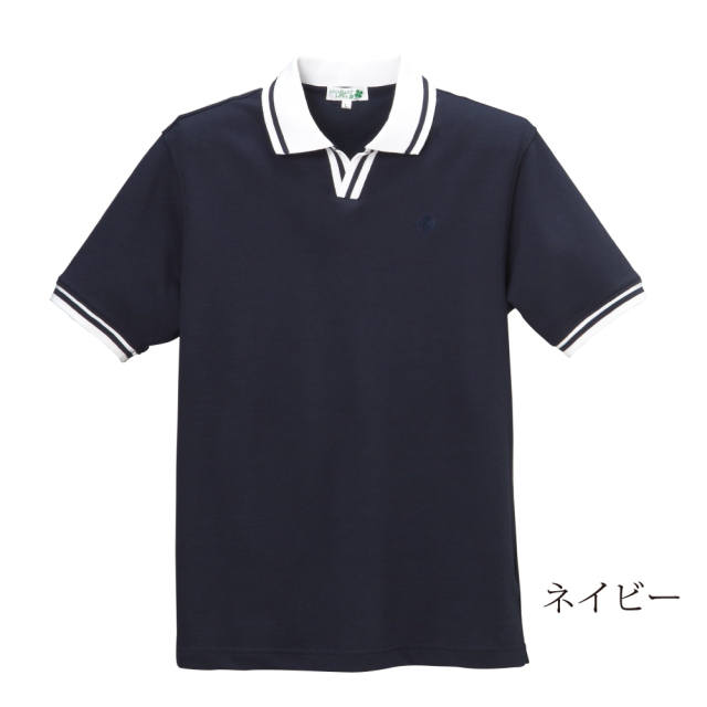 吸汗速乾機能、CoolMax糸使用のさやわかメッシュ地のメンズポロシャツ。胸元にクローバの刺繍入り。