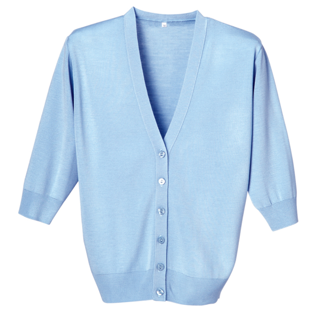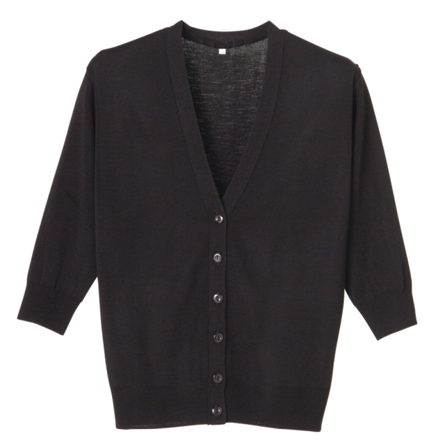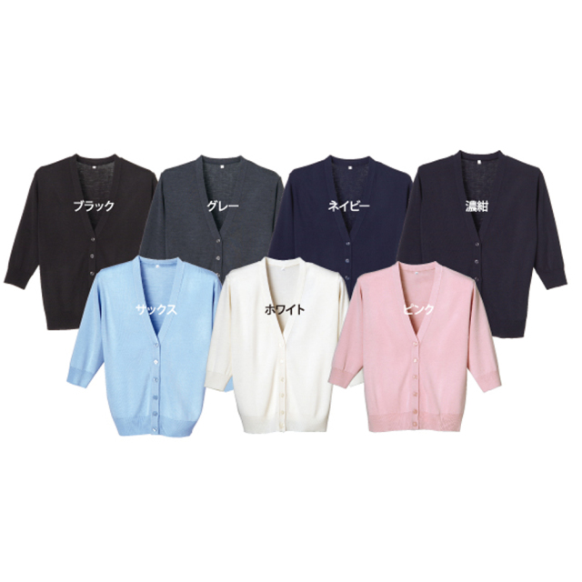 手元が気にならない日本製カーディガン七分袖タイプ。寒い時期やオフィスの冷房対策にぴったり。