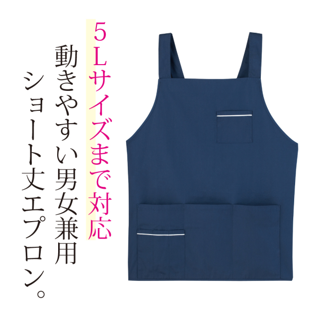 5Lサイズまで対応で大人気!動きやすい男女兼用ショートエプロン。