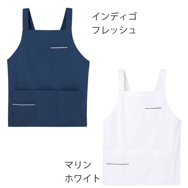 5Lサイズまで対応で大人気!動きやすい男女兼用ショート丈。肩紐がずれにくいH型で、ウエストは2段階にボタン調節できます。マリンホワイトとインディゴフレッシュのみ、ポケット部に配色ライン入り。