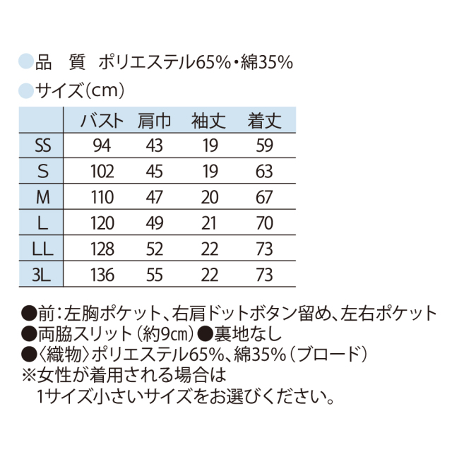 | 特徴 | 両脇スリット(約9cm)、裏地なし |
